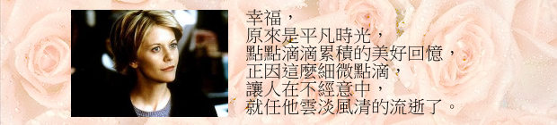 生活中的幸福原來正是平凡時光所點點滴滴累積的美好回憶,正因為是這麼的